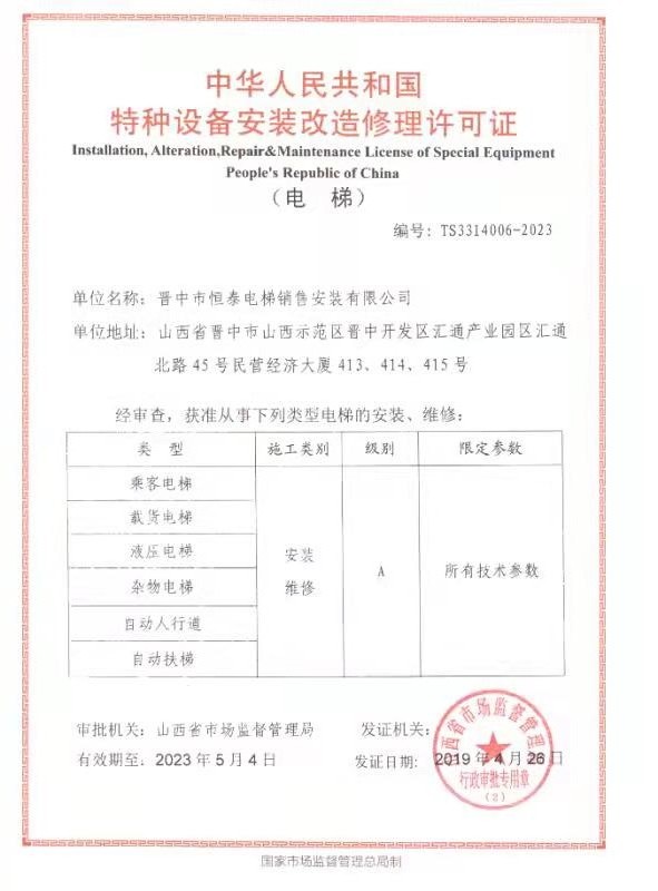 晉中市恒泰電梯銷(xiāo)售安裝有限公司